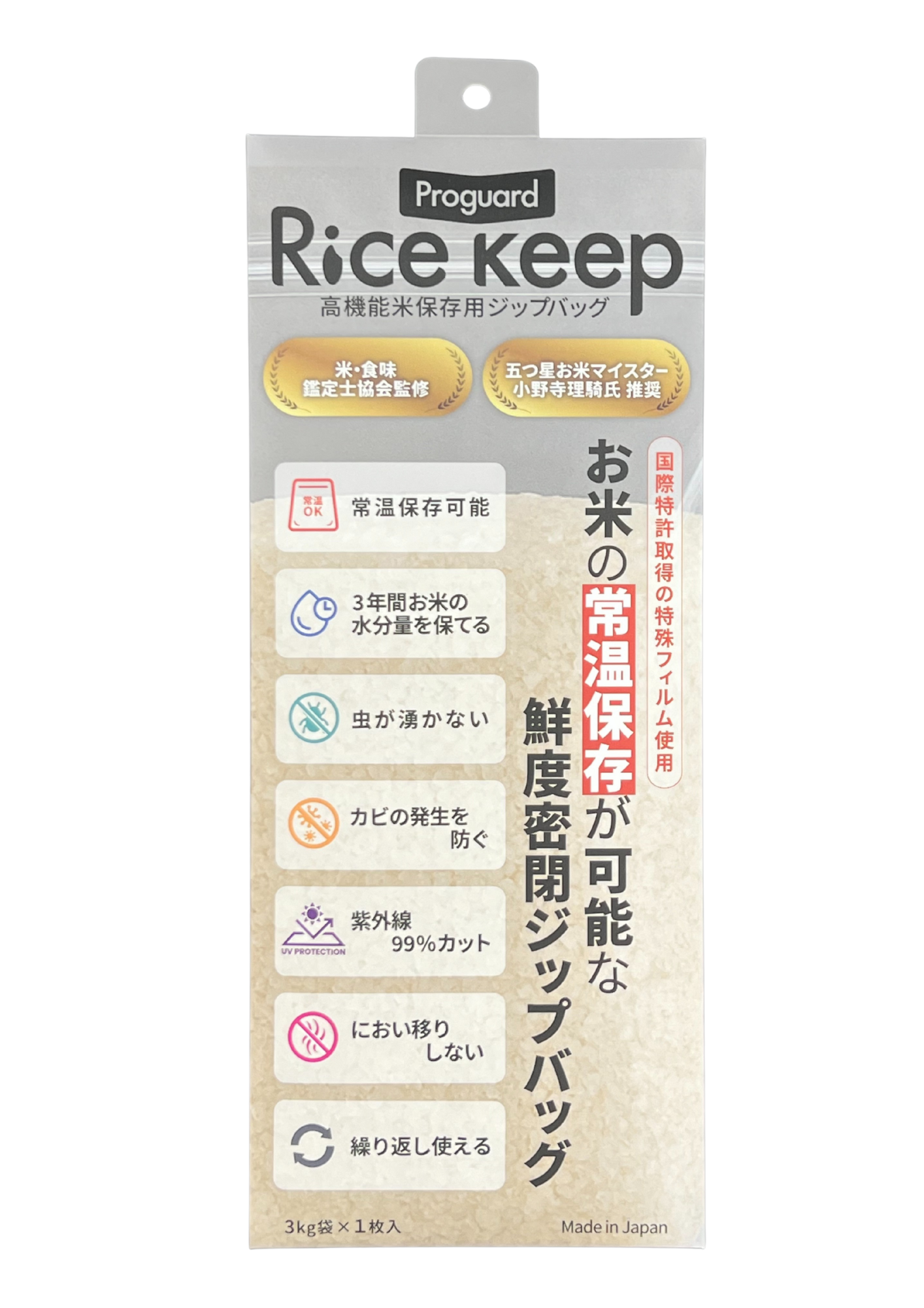 本製品は、一般消費者向けに好評を博している「プロガード・ライスキープ」の技術を基に、業務用途に最適化したBtoB専用モデルです。