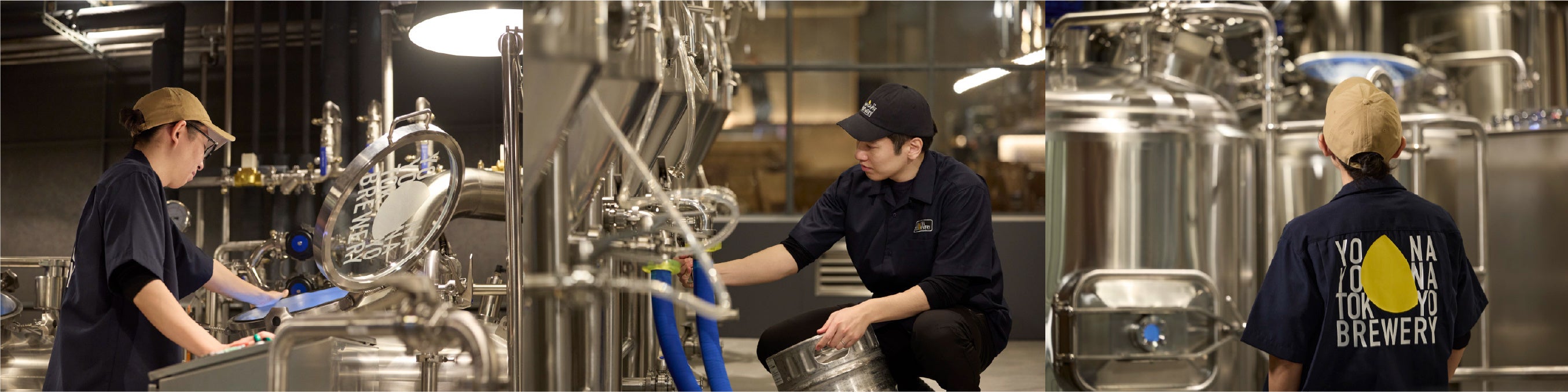 日本最大級の駅直結ブルワリーレストラン「YONA YONA TOKYO BREWERY」は、店内の醸造所でビールが仕込まれ、完成へと向かう躍動的なプロセスを体験できるという魅力的な店舗です。プロデュースの過程では、ここでしか味わえない「生きた風景」である醸造体験を完成させる不可欠なピースとして、人々が集い生まれる活気や、醸造所の臨場感を、ファッションと空間演出の力でより鮮やかに表現しました。