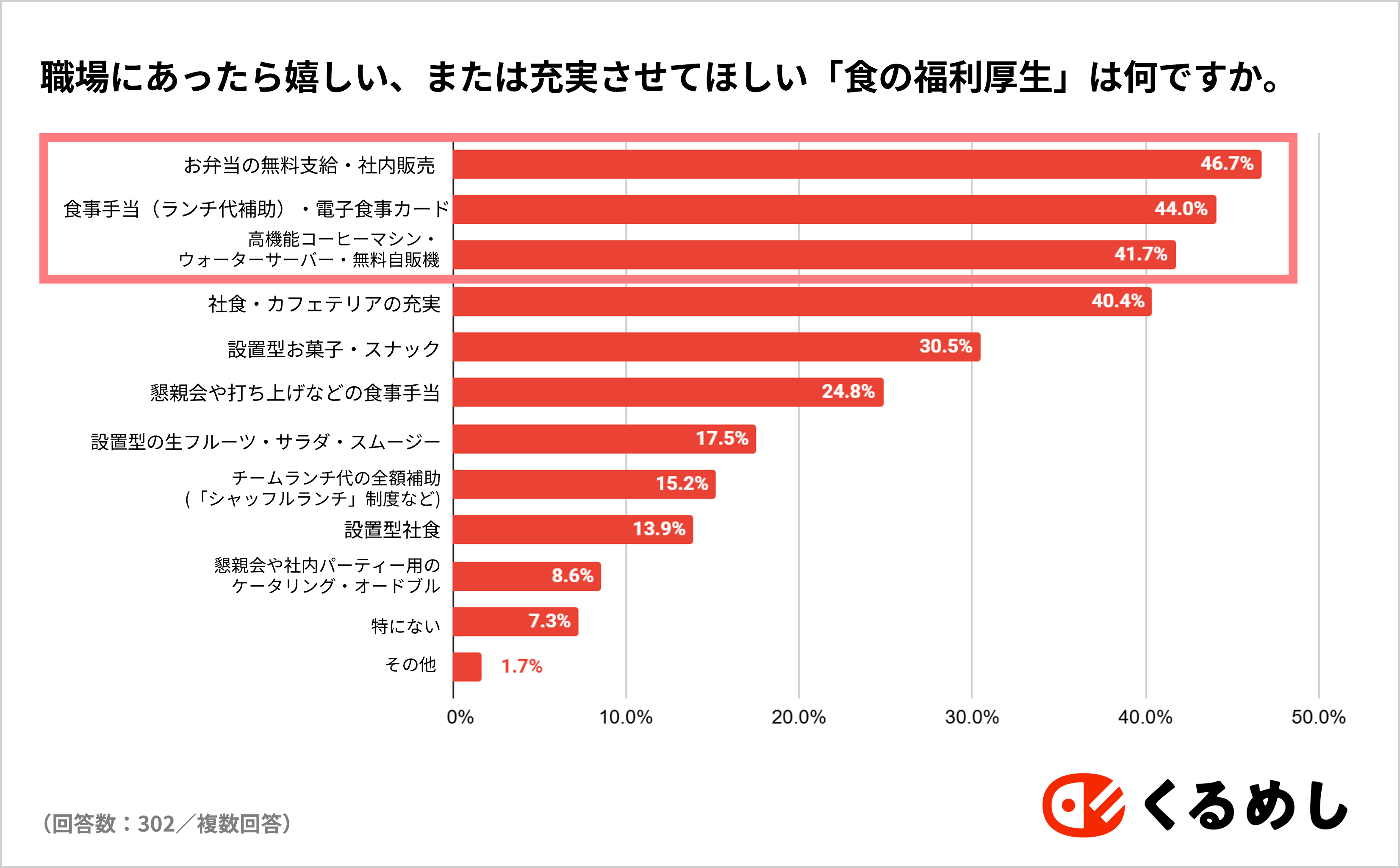 調査対象:くるめし弁当会員・シェフコレ会員およびsnaq.me office(スナックミーオフィス)利用企業担当者 男女302名