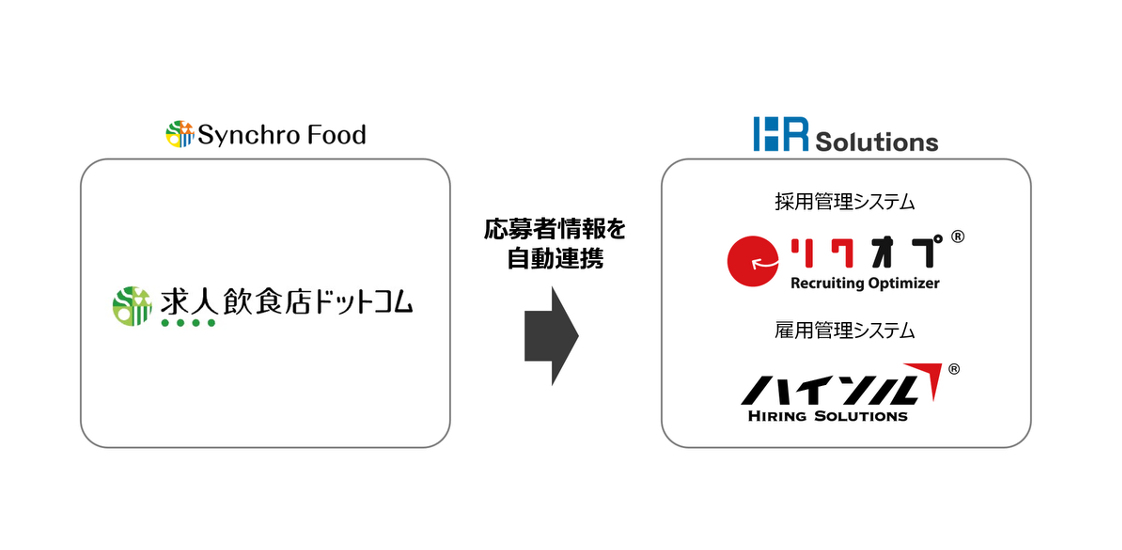 株式会社シンクロ・フード(本社:東京都渋谷区、代表取締役:大久保俊)とHRソリューションズ株式会社(本社:東京都中央区、代表取締役:武井繁)は、2026年3月18日より、飲食業界専門求人サイト「求人飲食店ドットコム」と、採用管理システム「リクオプ」・雇用管理システム「ハイソル」のシステム連携を開始しました。「求人飲食店ドットコム」が採用管理システムと連携するのは今回が初めてとなります。