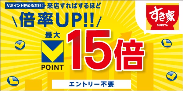 CCCMKホールディングス株式会社(本社:神奈川県横浜市、代表取締役社長兼CEO:髙橋 誉則、以下「CCCMKHD」)は、ゼンショーグループ傘下の「すき家」「なか卯」のご利用で最大15倍、「はま寿司」では最大7倍のVポイントがもらえるキャンペーンを2026年4月1日から2026年4月30日まで開催いたします。