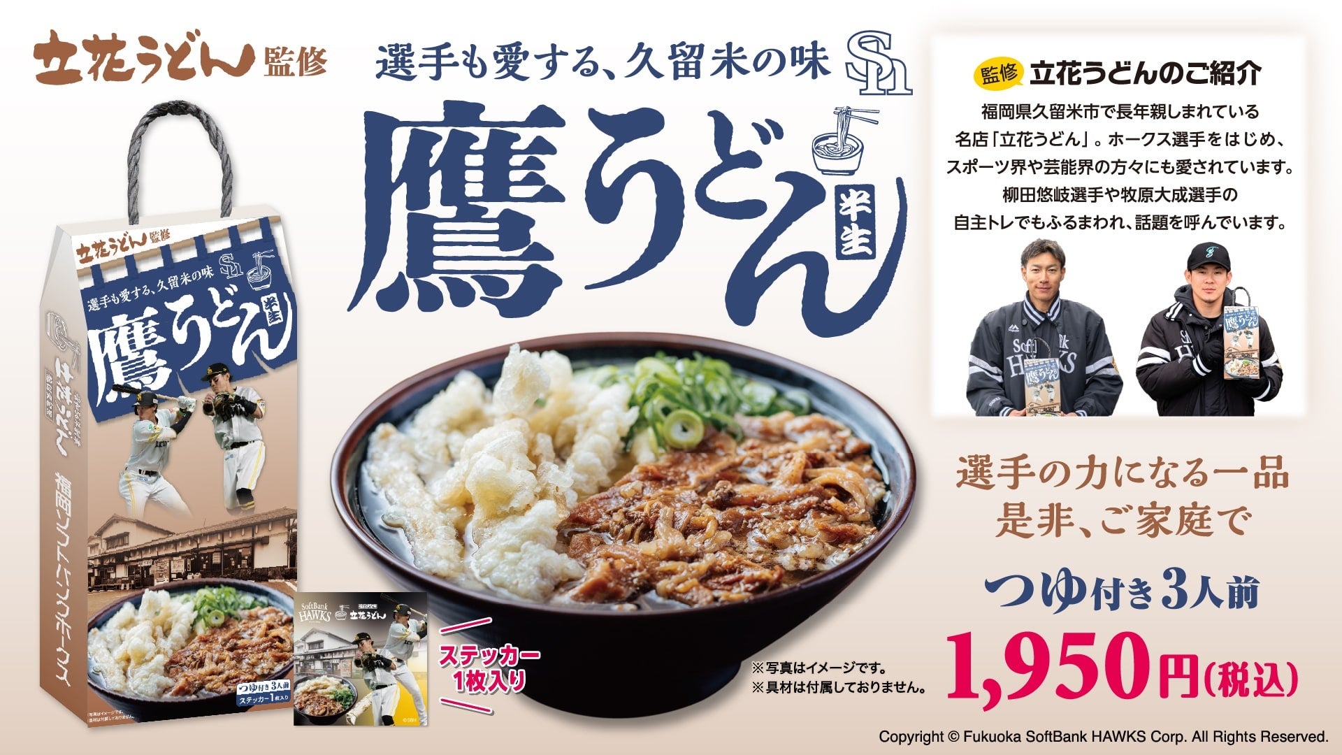 なお「鷹うどん」は、HAWKS STORE HOMEおよび久留米立花うどん店舗にて販売いたします。
