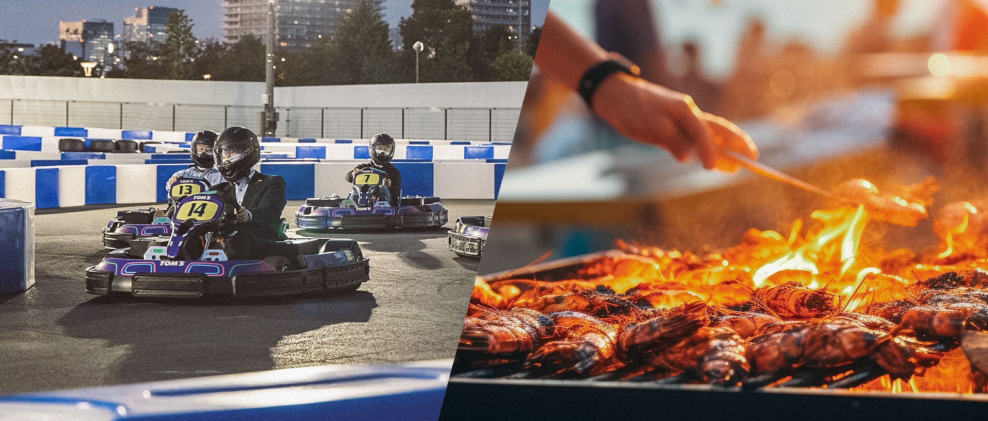 東京23区内唯一の常設サーキットで爽快なカートドライブを楽しんだ後、手ぶらで本格的なバーベキューを楽しめる、お台場ならではのレジャー体験をご提供いたします。
