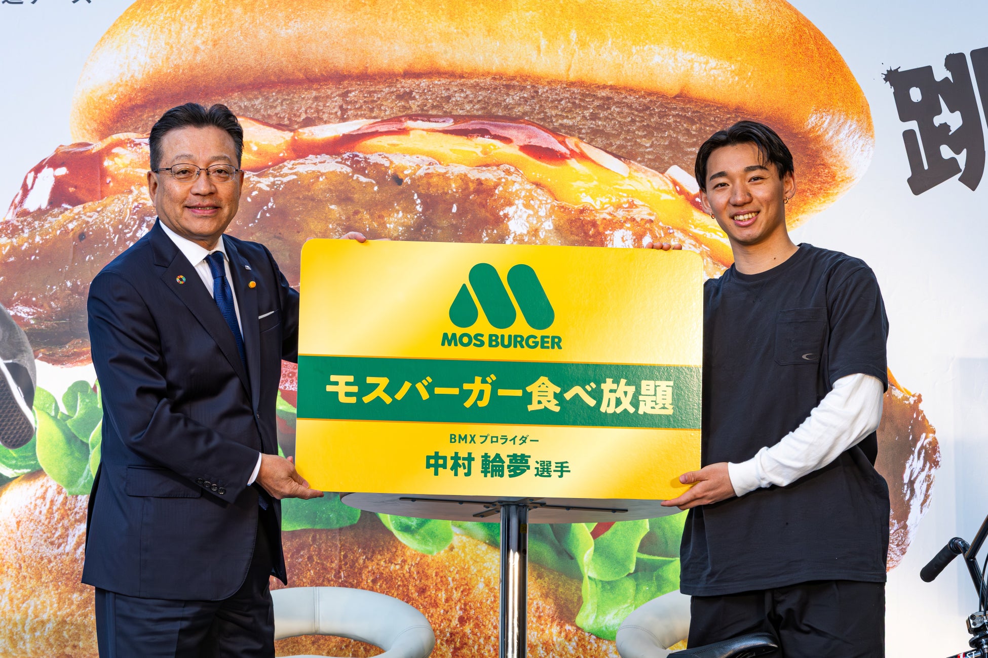 モスバーガーを展開する株式会社モスフードサービス(代表取締役社長:中村 栄輔、本社:東京都品川区)は、BMXフリースタイル・パークの中村輪夢選手(所属:ウイングアーク1st株式会社)との「チャレンジパートナー契約」締結にあたり、「モスバーガー×中村輪夢 チャレンジパートナー契約発表会」を2026年3月26日(木)に開催しました。