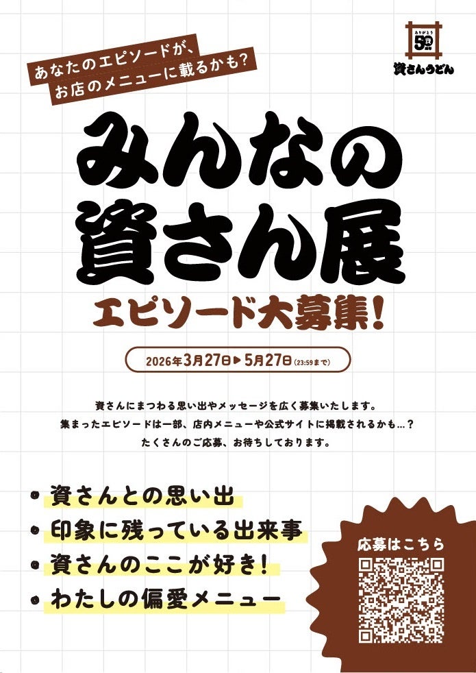 3/27(金)~5/27(水)の期間中、皆さまの資さんのエピソードを大募集!