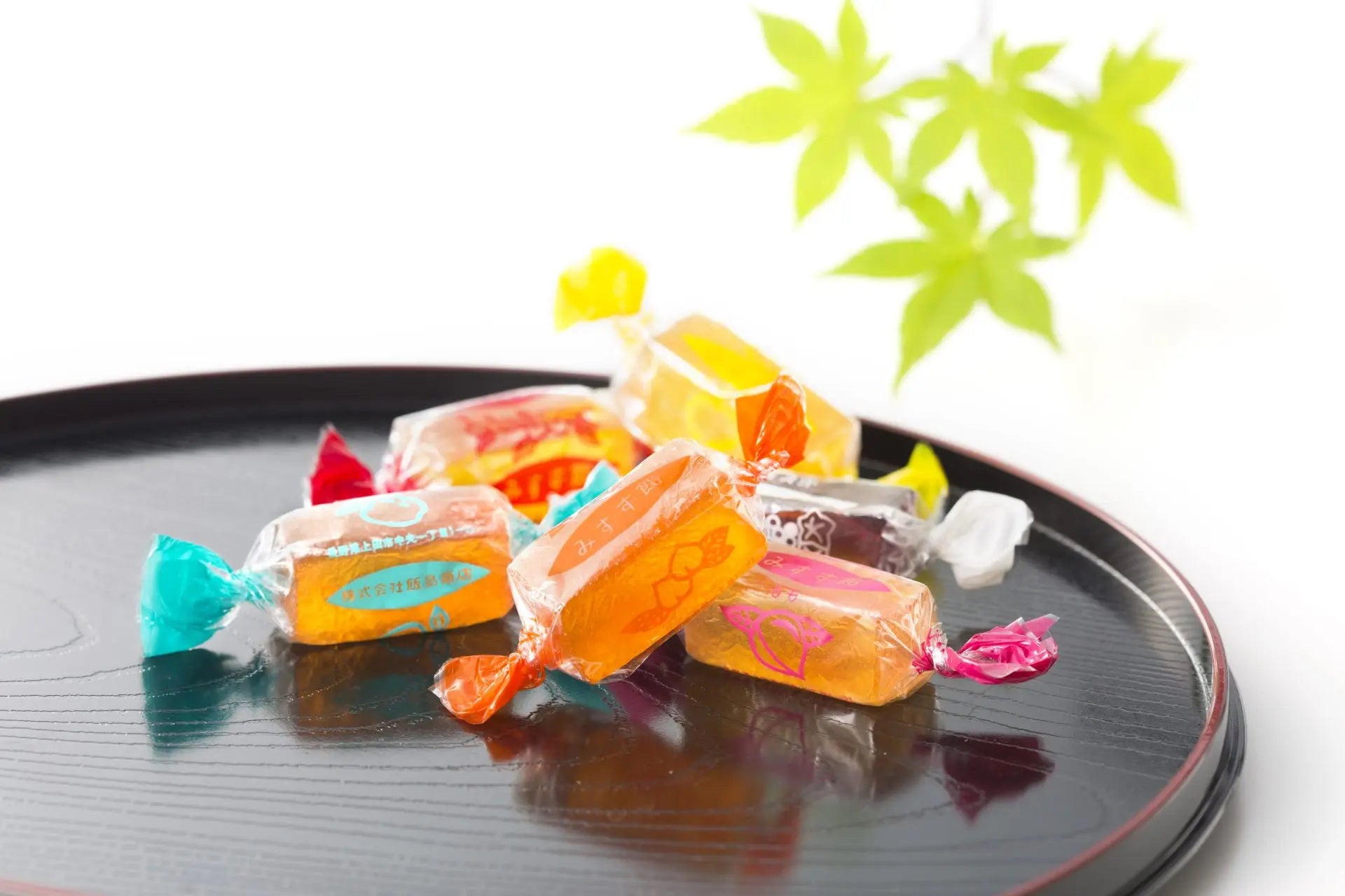 また「みすゞ飴」は、国産果実を寒天・グラニュー糖・水飴で固めた、長野県の伝統的な和風ゼリー菓子。