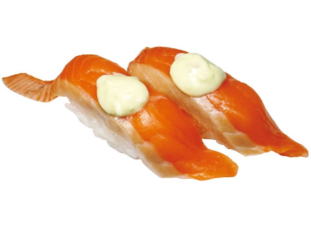 わさびの効いたタルタルソースで楽しむサーモン握りです。