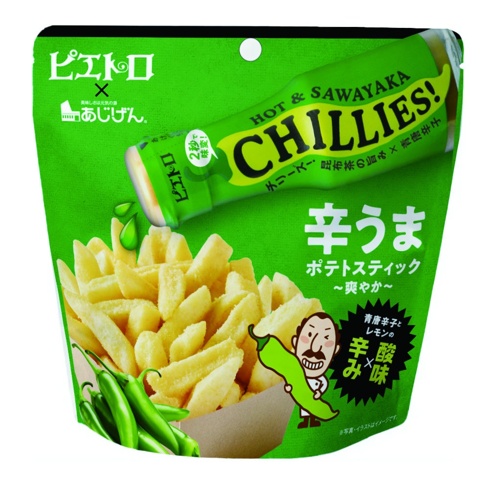株式会社ピエトロ(本社:福岡市中央区、代表取締役社長 高橋泰行)は、話題の次世代チップス「SABACHi(サバチ)」などの製造販売を行う有限会社 味源(本社:香川県仲多度郡、代表取締役 西山泰和)とのコラボ商品として、これまで「ピエトロ野菜チップス」や「辛うまポテトスティック」を販売してまいりました。そしてこのたび、第3弾として「辛うまポテトスティック~爽やか~」を2026年4月1日(水)より新発売いたします。ピエトロの人気辛味調味料「CHILLIES!(チリーズ)」の中でも、青唐辛子を使用した「ピエトロ CHILLIES! 青唐辛子」の爽やかな辛みと酸味が特長のフレーバーで、これまでとはひと味違うおいしさをお楽しみいただけます。