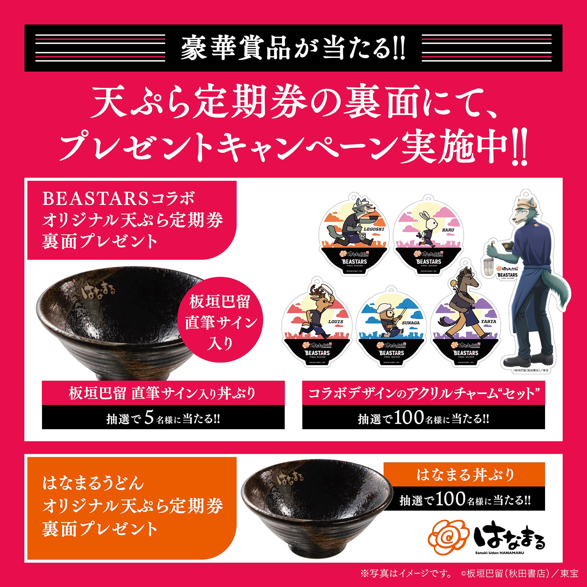 BEASTARS版: 板垣巴留直筆サイン入り丼ぶり(5名様)、限定アクリルチャームセット(100名様)