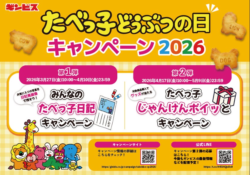 これに伴い、2026年3月27日(金)より「思い出日記」を作って参加する「みんなのたべっ子日記キャンペーン」と、2026年4月17日(金)よりLINEでレシートを送って挑戦する「たべっ子じゃんけんポイッとキャンペーン」で、総勢1,050名様にプレゼントが当たる2大キャンペーンを開催いたします。