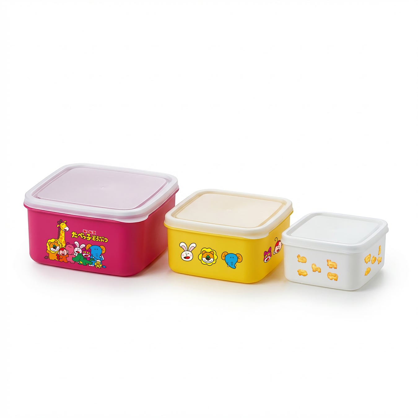 たべっ子どうぶつは1978年に発売されたロングセラー商品です。 “親子のコミュニケーションビスケット”として学びながら、美味しく食べてもらうことを目指しています。 「たべっ子どうぶつ バター味」は46種類のどうぶつ型ビスケットに、英語でそれぞれのどうぶつ名が印字されています。パッケージには様々なエンターテインメント性や教育性のコンテンツがあり、裏面にはどうぶつの英語名と日本語名が表記されているので、ビスケットを食べながら目で見て学ぶことができます。 現在はお菓子をはじめ、キャラクターのグッズ販売、期間限定イベントやPOP UP SHOPの開催、映画公開など多様な楽しみ方で幅広い年齢層の方にご好評いただいています。