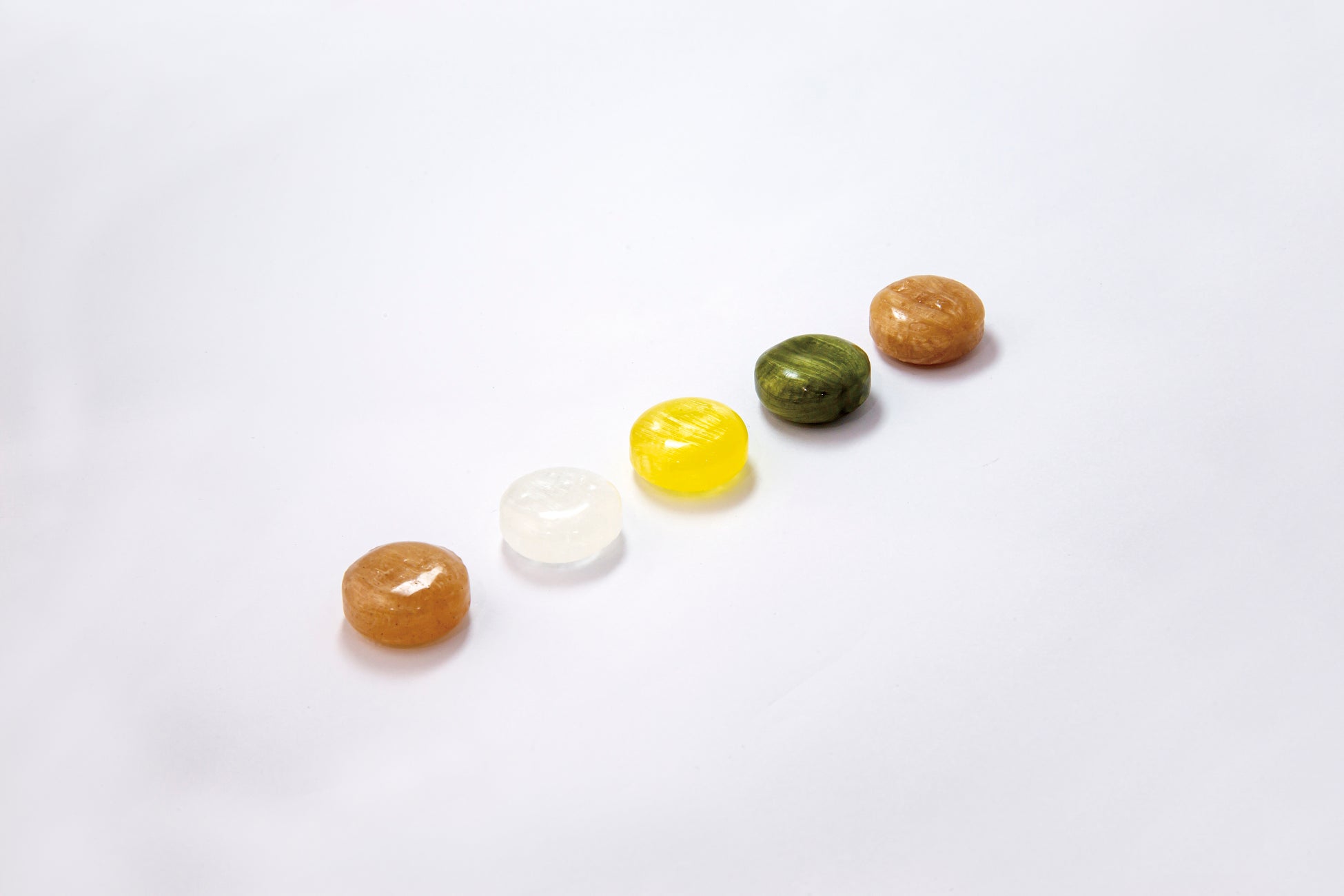 オリゴ糖で作った飴 (たまり飴/たまり醤油味、しお飴/塩味、にっき飴/シナモン味、抹茶はっか飴/抹茶ハッカ味、檸檬はっか飴/檸檬ハッカ味) |