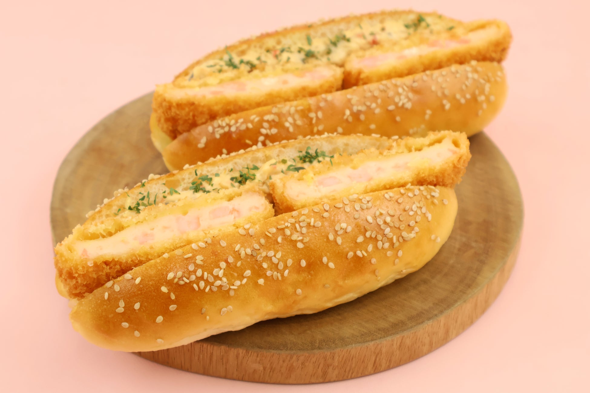 ふんわりとしたパンで、エビカツとオーロラソースをサンドしました。ひとくち食べれば、ふんわりパンとエビカツの優しい味わいが広がります。お子様から大人まで楽しめる、飽きのこない定番の味です。