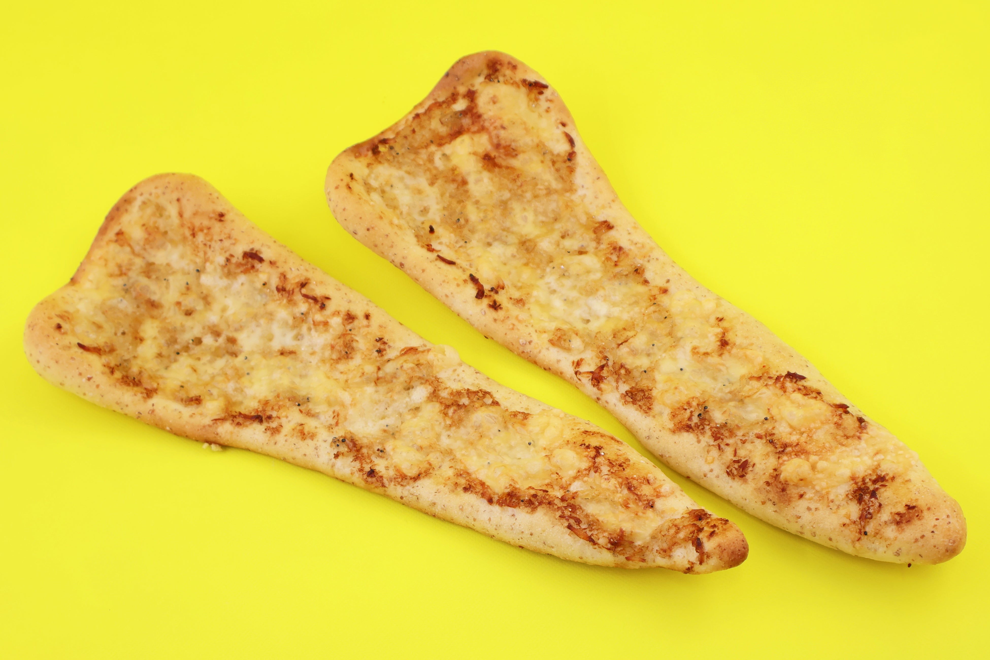 ライ麦全粒粉入りフランスパン生地を薄く伸ばし、しらすバターフィリングをのせ、パリパリに焼き上げました。パリッとした軽快な食感と、香ばしいしらすとバターの組み合わせがクセになる!おつまみにもぴったりな一品です。