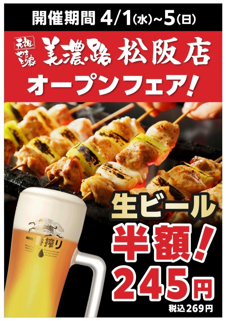 株式会社あみやき亭が展開する焼き鳥居酒屋「美濃路」は、2026年4月1日(水)17:00~