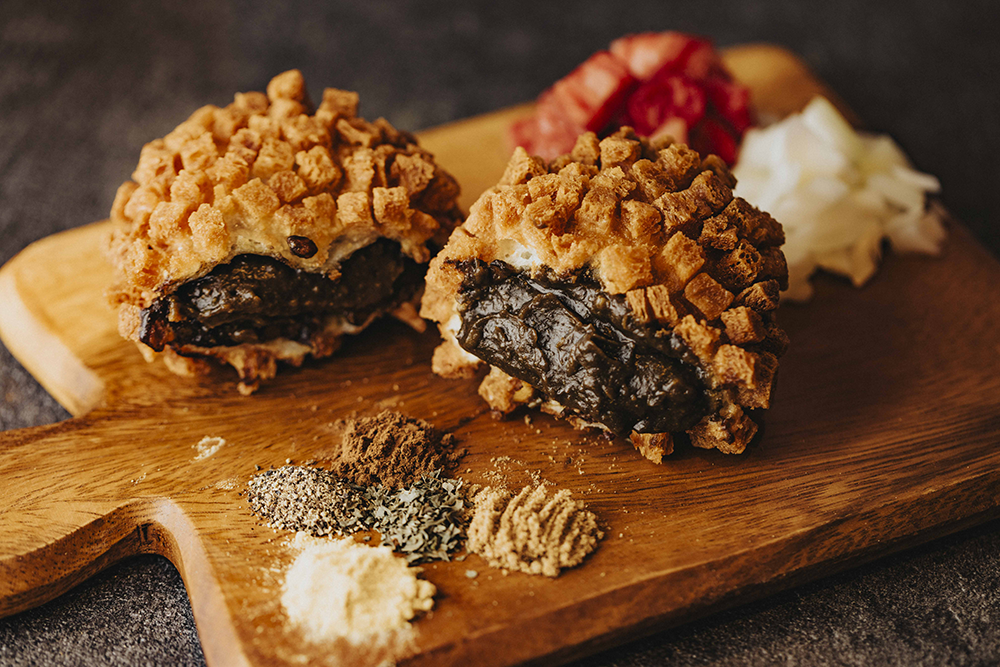 淡路島にあるこだわりのベーカリーです。淡路牛や地元野菜を煮込んだスパイシーな黒カレーを、自家製クルトンをまとわせたモチっとした甘めの生地で包んで揚げたカレーパンが絶品です。