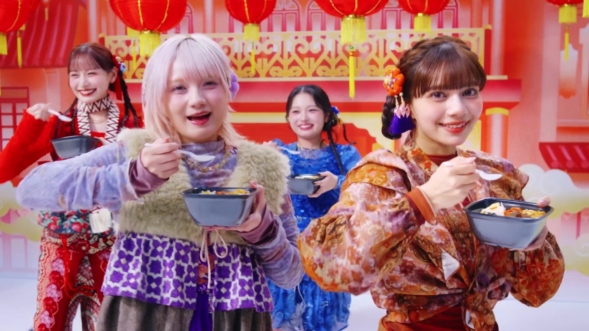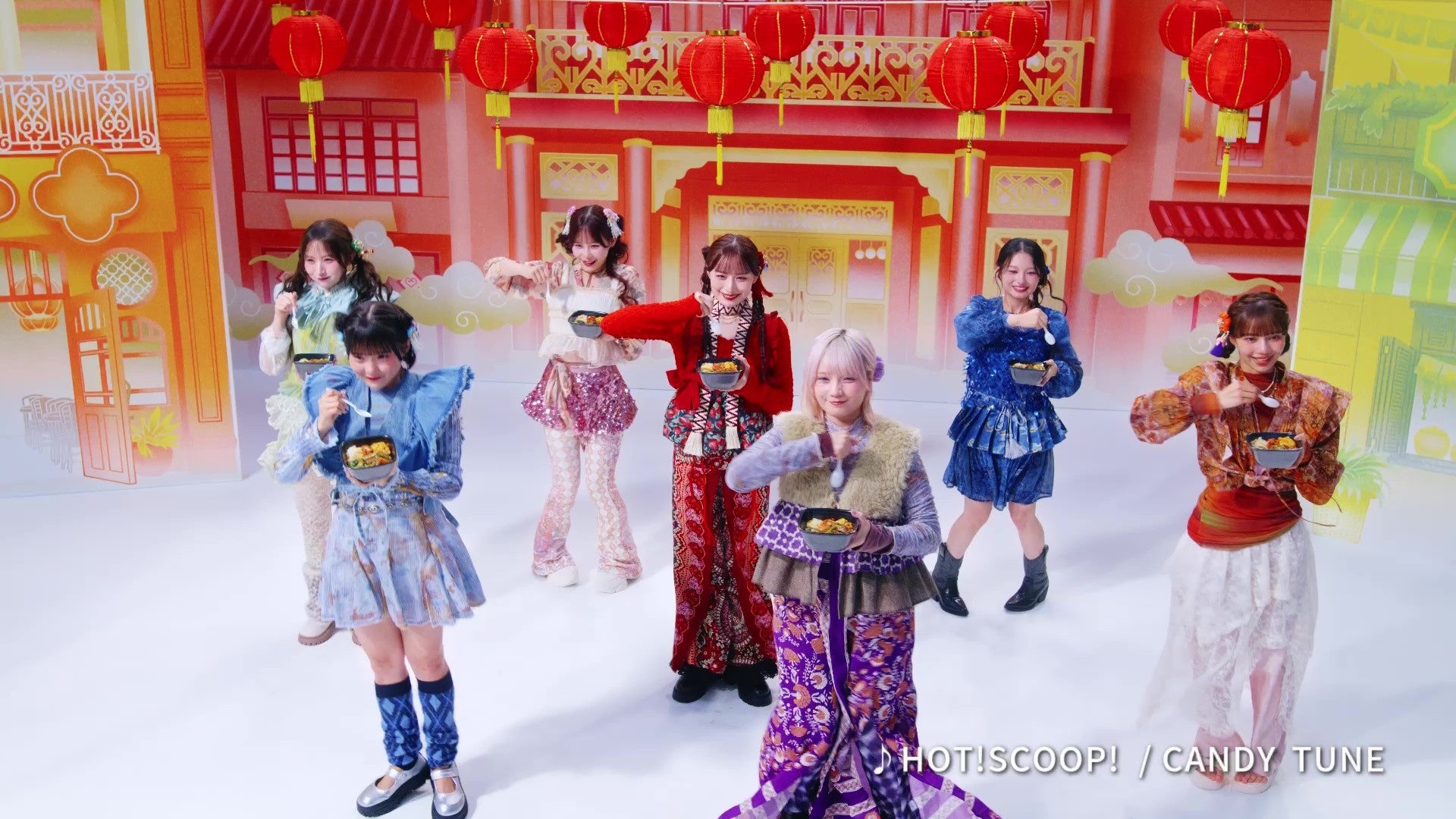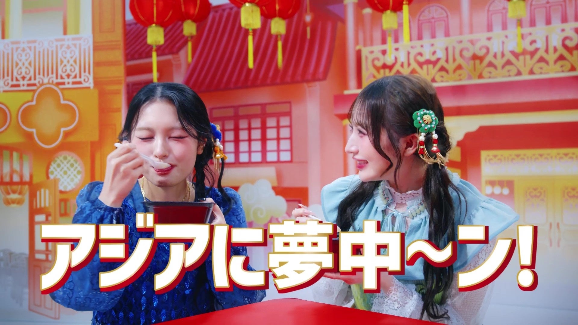 4月の新商品『焼肉ビビンバ』のCMは、アジアの活気あふれる世界観を舞台に、「CANDY TUNE」がメンバーカラーを配したアジアンテイストの衣装で登場。5種の具材と旨辛ダレを混ぜ合わせて楽しむ商品の美味しさを、キャッチーな“まぜまぜダンス”で表現しています。「アジアに夢中~ン!」という掛け声とともに、『焼肉ビビンバ』を頬張るメンバーの幸せそうな表情は必見です。また、CM楽曲には今回が初披露となる新曲「HOT!SCOOP!」を起用。『焼肉ビビンバ』の魅力を楽しんでいただけるCMとなっております。