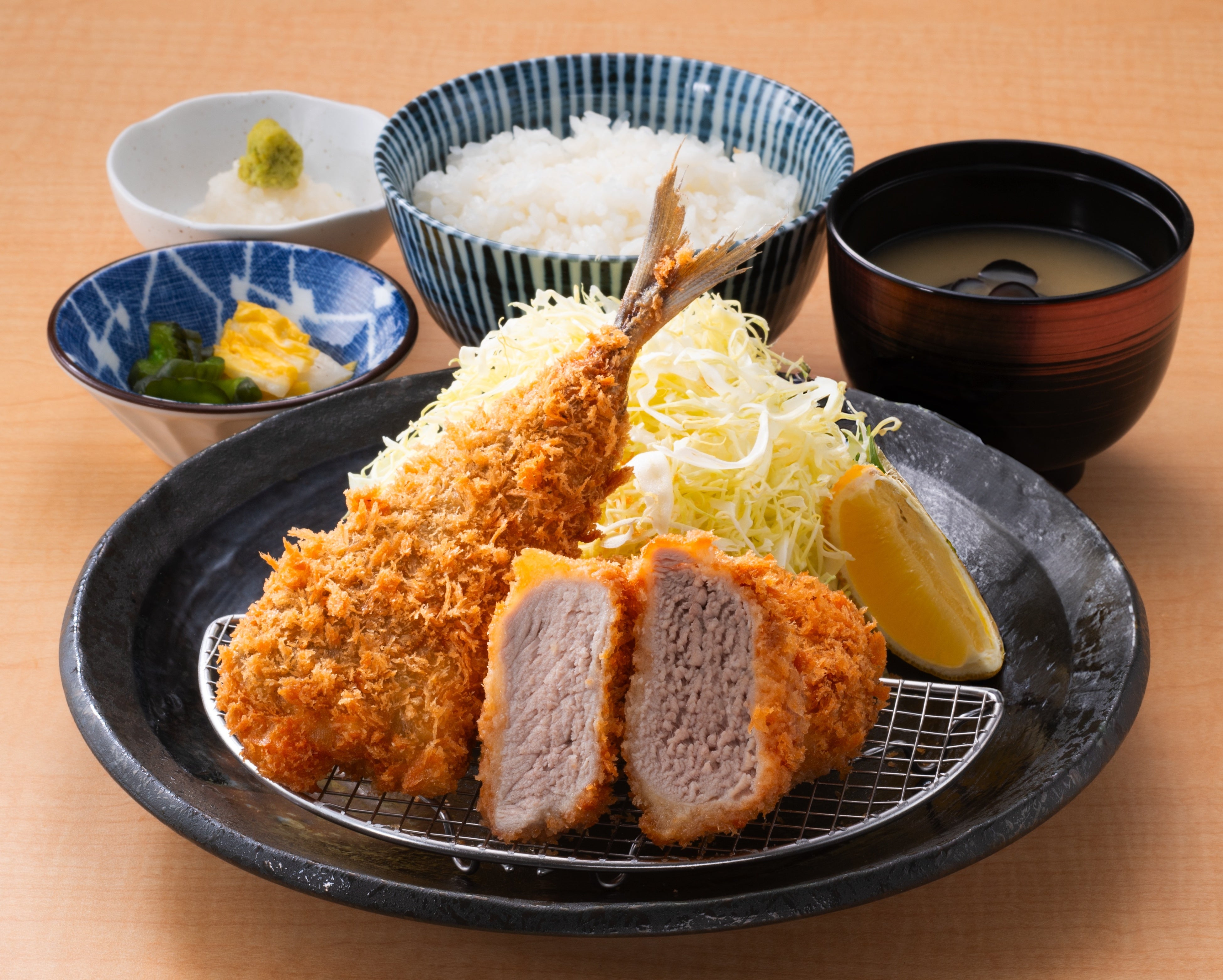 ・あじフライとロースかつ定食(おろしわさび付き) ―税込1,880円