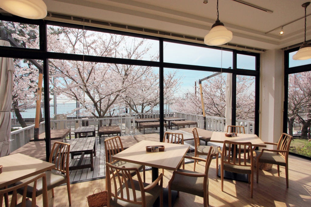 お花見散歩のあとに店内でゆっくりと過ごされたい方には、同じく須磨浦公園にある「PATISSERIE TOOTH TOOTH Sea Side Cafe」がおすすめです。お天気が良い日には、桜と海のコントラストが生み出す絶景のロケーションをお愉しみいただけます。