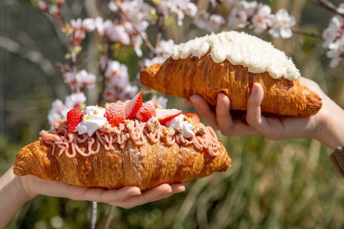 今年はお花見のおともに、サクサク食感のクロワッサンに甘いクリームをたっぷりとのせたクロワッサンスイーツを提供いたします。お得なドリンクセットもご用意しております!