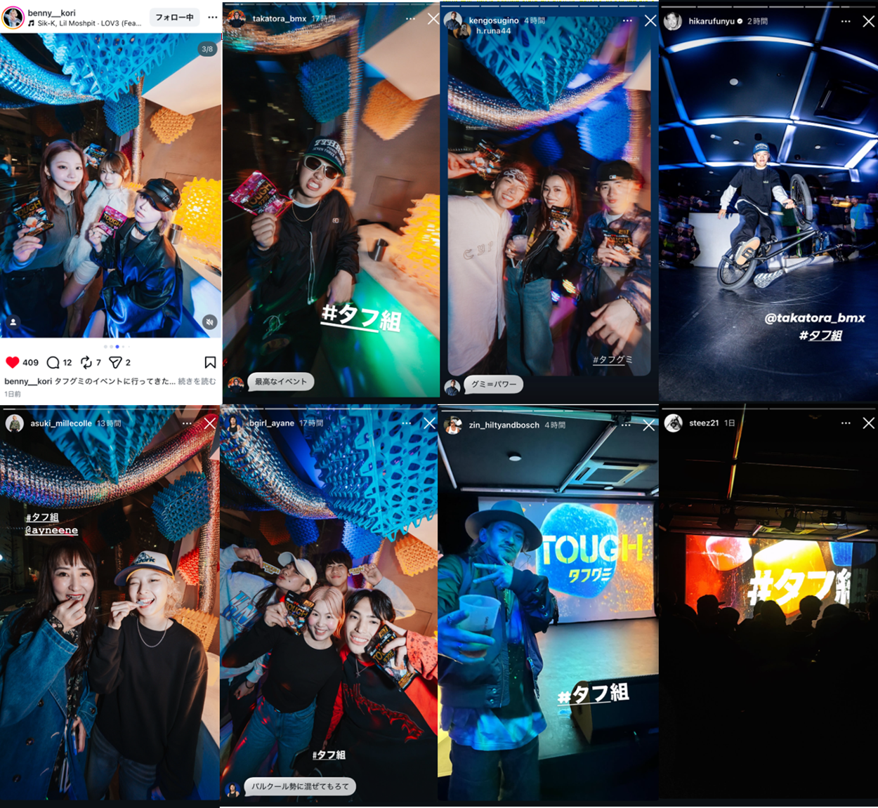 今回のイベント名にもなっている『タフ組』とは、『タフグミ』を愛し、失敗や逆境のなかでも前向きに進み続ける人たちを象徴する呼称です。『タフ組NIGHT』では、さまざまなカルチャーシーン(=界隈)で活動する『タフグミ』ファンやゲストが一堂に会し、それぞれが『タフ組』である理由につながる『タフグミ』らしさや魅力を共有し合う場を目指しました。