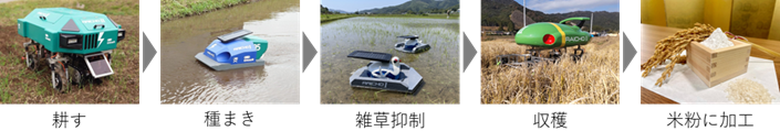 日本には大規模化できない小規模水田が多数存在しますが、そのような環境に対応できる小型ロボットを活用して機械化・省人化を推進し、稲作を維持する仕組みの構築を通じて、コメ自給率の向上および地域の持続可能性向上・土地の保全に貢献することを目指しています。