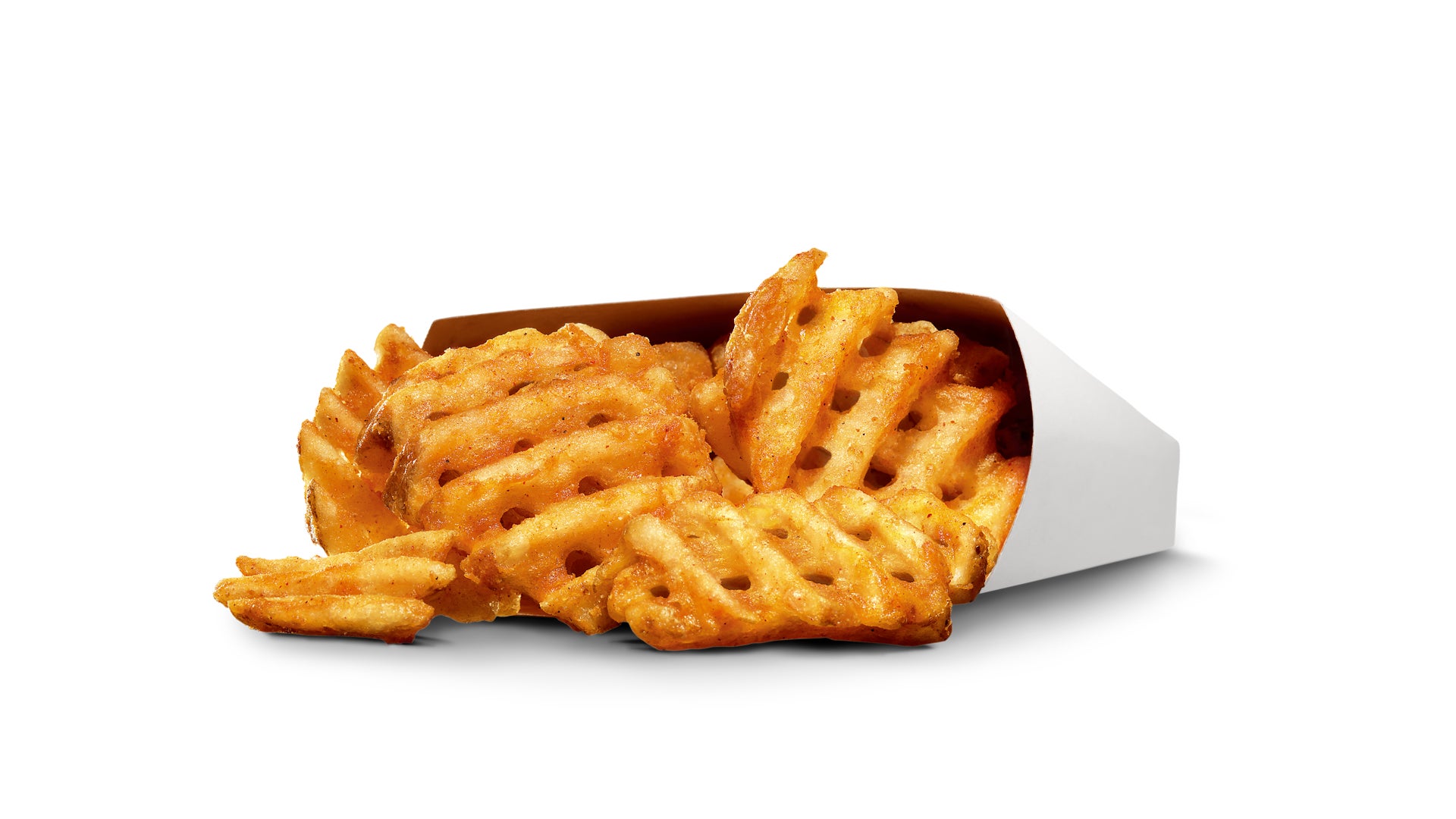 昔から世界中のカールスジュニア®で愛される定番メニュー。格子状にカットされたポテトは、全体をカラッと揚げやすく、特製のスパイスが絡みやすい形状となっているため、冷めても美味しくお召し上がりいただけます。また、ジャガイモそのものの旨味を口いっぱいに感じていただけるよう、1つのサイズが大きいのがこだわりのポイントです。ジャガイモそのものをカットしているため、全て形が違い、その形ごとの味をお愉しみいただけます。