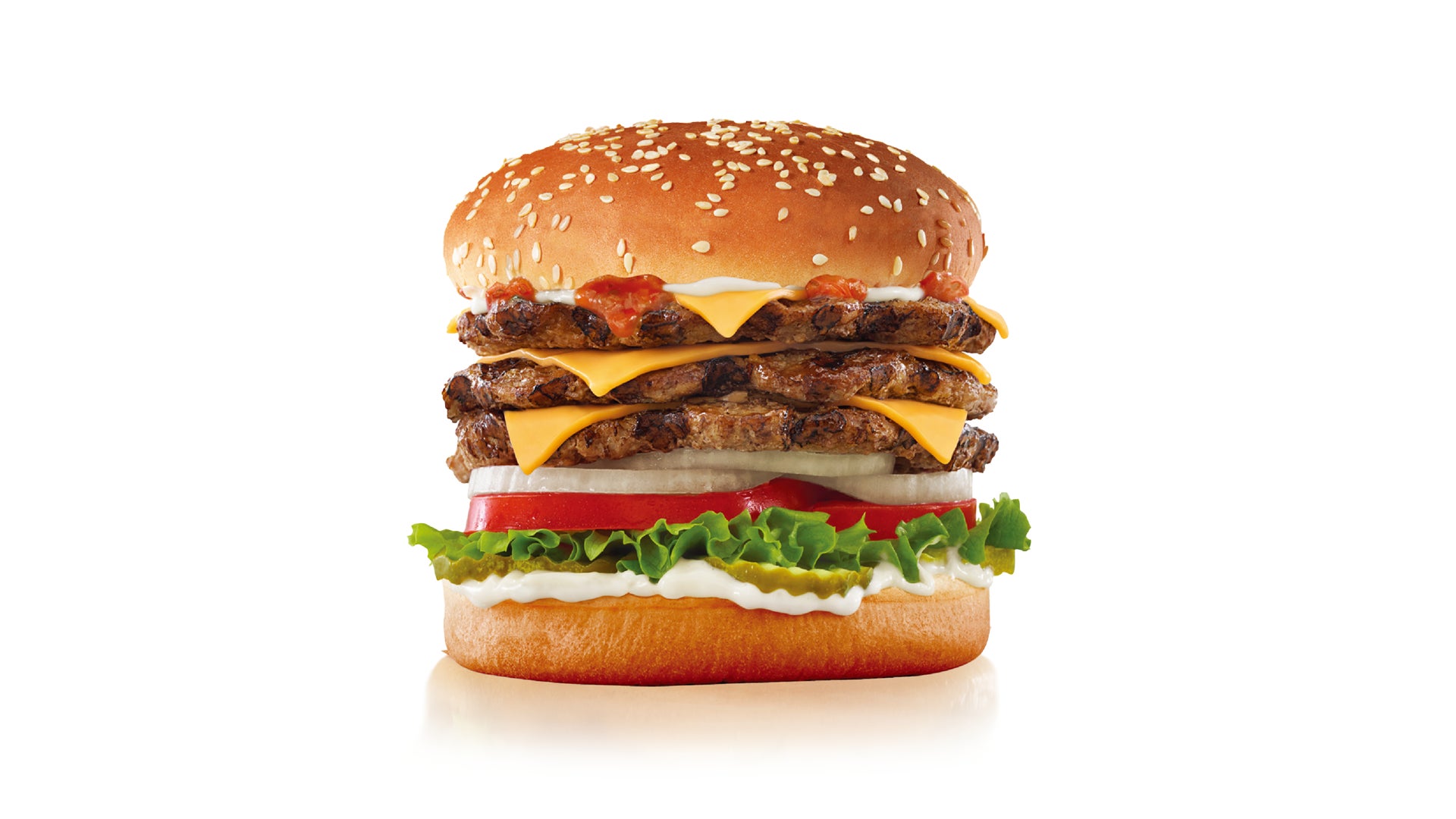 「フェイマススター」のパティが3枚になったバーガーです。3枚のパティが重なり、食べ応えのある厚さが魅力です。