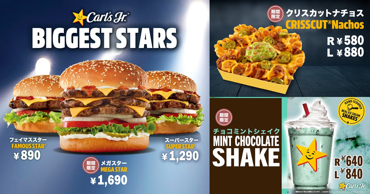 株式会社アレフ(本社:北海道札幌市、代表取締役社長:庄司 大)が展開するハンバーガーレストラン「カールスジュニア®」は、2026年3月18日(水)から、食欲をそそるハンバーガーメニューとフレーバーシェイクを期間限定で好評発売中です。