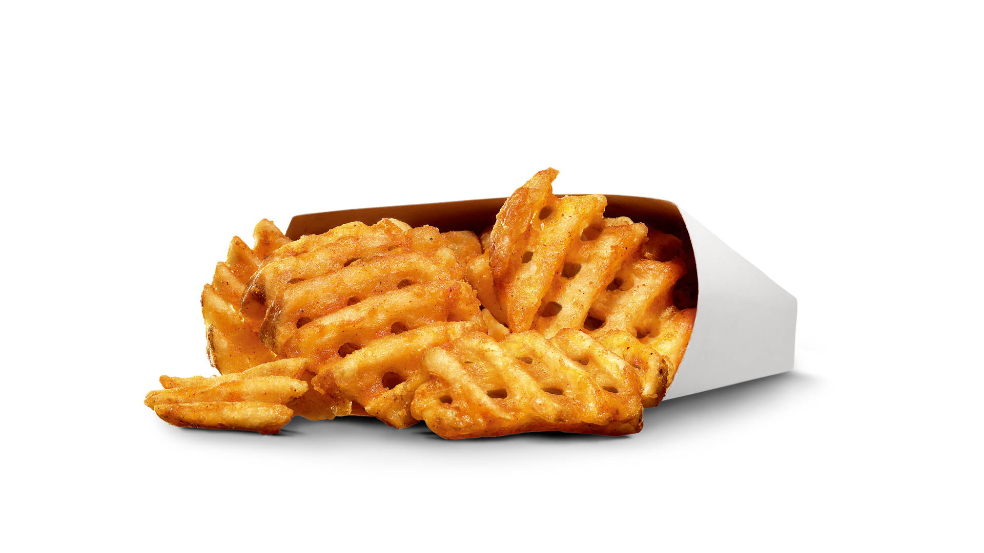 昔から世界中のカールスジュニア®で愛される定番メニュー。格子状にカットされたポテトは、全体をカラッと揚げやすく、特製のスパイスが絡みやすい形状となっているため、冷めても美味しくお召し上がりいただけます。また、ジャガイモそのものの旨味を口いっぱいに感じていただけるよう、1つのサイズが大きいのがこだわりのポイントです。ジャガイモそのものをカットしているため、全て形が違い、その形ごとの味をお愉しみいただけます。
