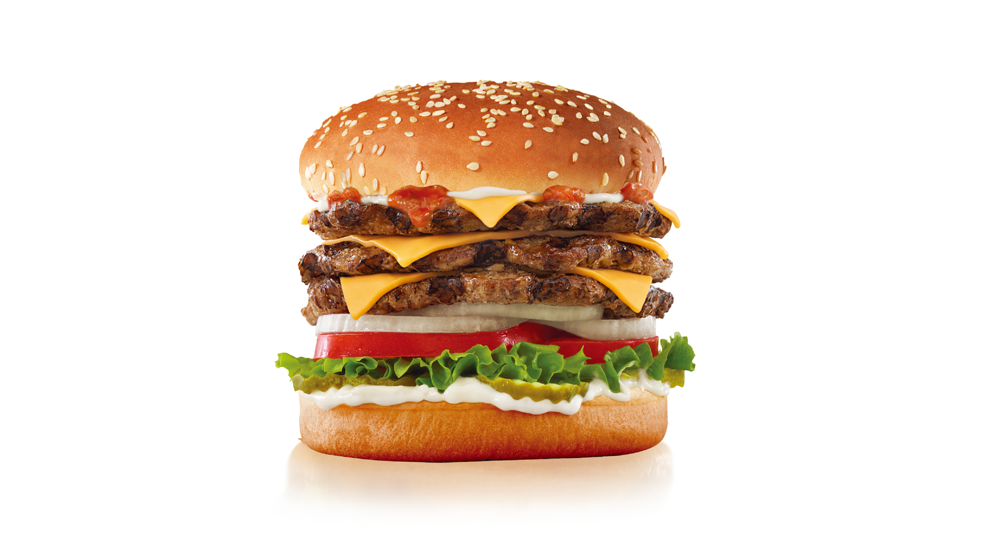 「フェイマススター」のパティが3枚になったバーガーです。3枚のパティが重なり、食べ応えのある厚さが魅力です。