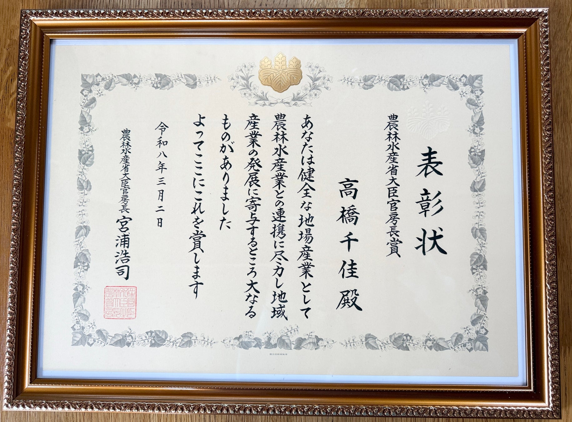 主人のサポートが無かったらここまで来れなかった。いつもそばで支えてくれて、沢山のアドバイスのおかげで農林水産省大臣官房長賞まで連れてきてくれました。