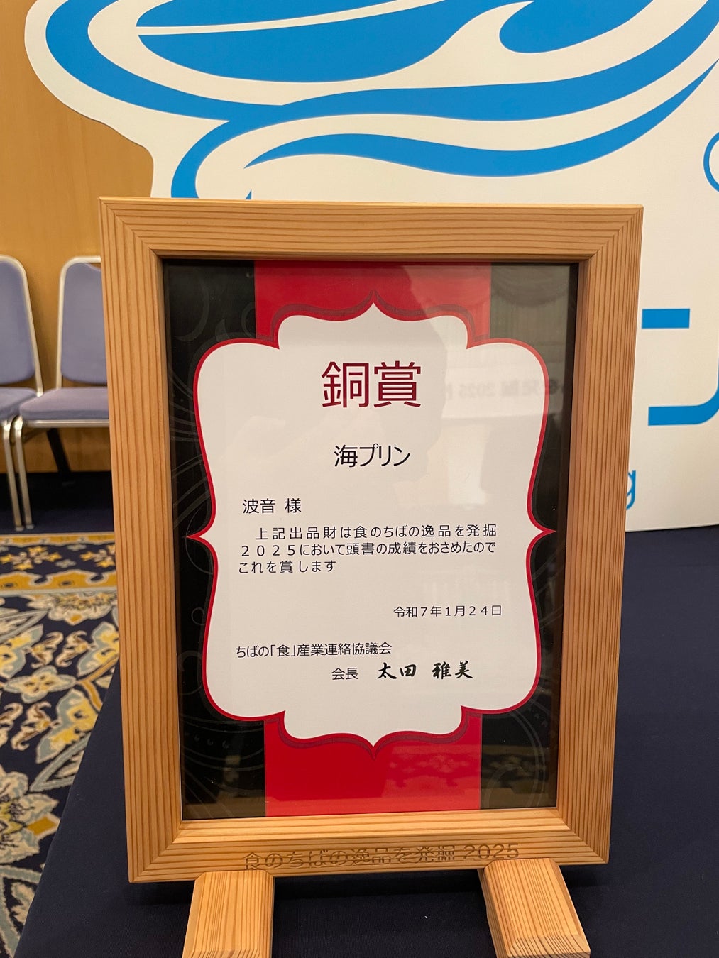 波音(本社:千葉県長生郡一宮町東浪見5-5太東ビーチ88-1F、代表:高橋千佳https://umipurin.jp/)は、第47回食品産業優良企業等表彰 食品産業部門〈農商工連携推進タイプ〉にて、農林水産省大臣官房長賞を受賞いたしました。本表彰は、地域の農水産業者との連携や地域活性化への貢献が評価されるものです。表彰式が2026年3月2日(月)に如水会館(東京會舘)にて行われ、農林水産省大臣官房総括審議官の河南氏より表彰状を頂きました。