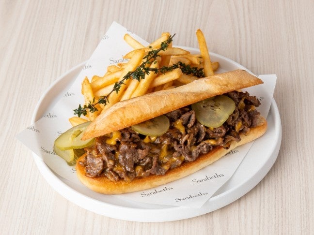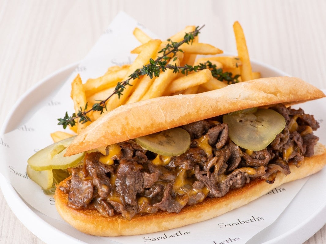香ばしく焼き上げた牛肩スライスに甘みを引き出したソテーオニオンとコク深いレッドチェダーを合わせ、ピクルスのほどよい酸味で引き締めたフィリングを、外はカリッと中はふんわりのソフトバゲットにサンドし、仕上げにフレンチフライを添えた「フィリーチーズステーキサンド」は、上品で食べ応えのある味わいです。アメリカ・フィラデルフィアの名物をサラベスらしく上品にアレンジした、季節限定メニューをぜひお楽しみください。
