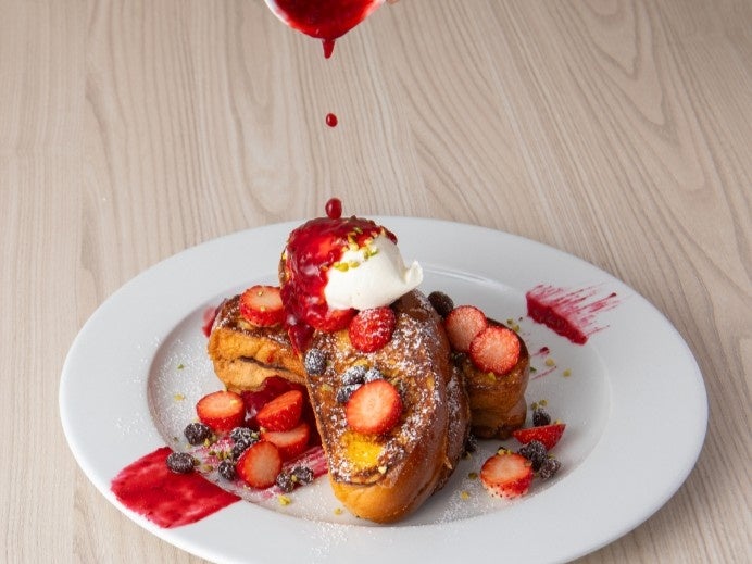 「小倉フレンチトースト」は、サラベス特製の卵とバターの香りがふんだんに広がるふわふわの“ハッラーブレッド”に、上品な甘さの小倉餡をサンドし、アパレイユにたっぷり浸して香ばしく焼き上げてた春限定のフレンチトースト。ほどよい塩気を加えたマスカルポーネホイップを贅沢にトッピングし、ストロベリーソースと合わせることで、甘みの中に爽やかな酸味が広がります。