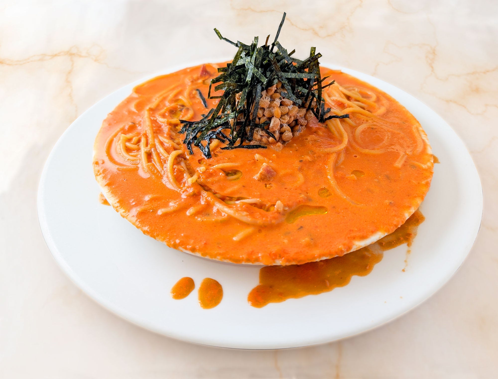 中でもスタッフのイチオシは、『茨城なら納豆!もっと病みつきトマトクリーム』!「えっ、納豆!?」と驚かれるかもしれませんが、納豆好きにはぜひ食べていただきたい一品。納豆特有のコクとトマトクリームのまろやかさは、やみつきになること間違いなし。他では決して味わえない、当店だけの自信作です。