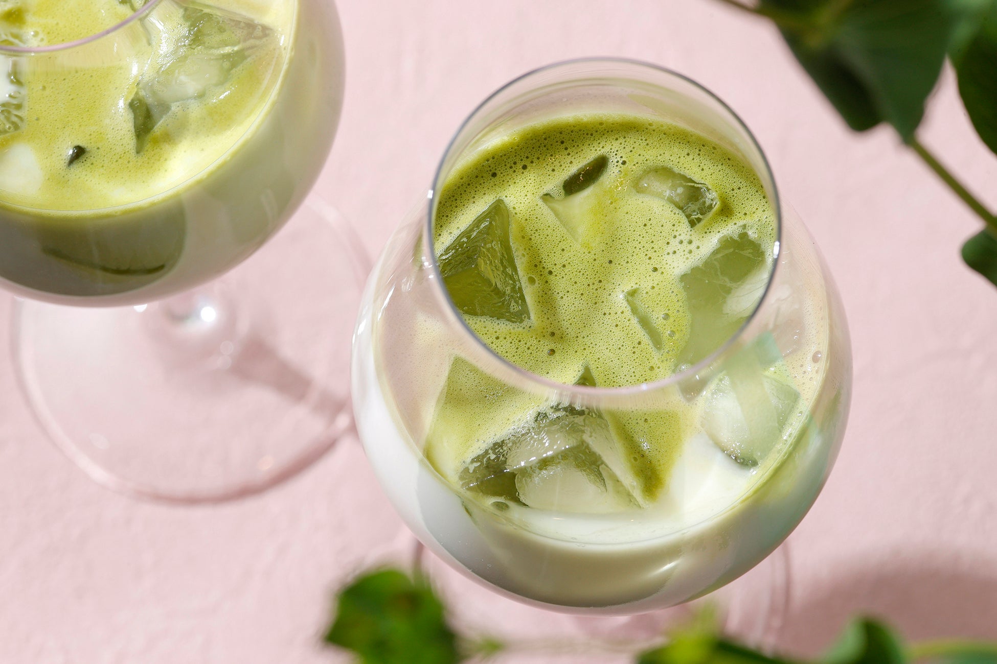 TAVERNオリジナルのホワイトチョコレートと抹茶を合わせたシロップを、ミルクの上に注いで楽しむ、軽やかなくちあたりのアイス抹茶ラテをアフタヌーンティーと一緒にお楽しみください。