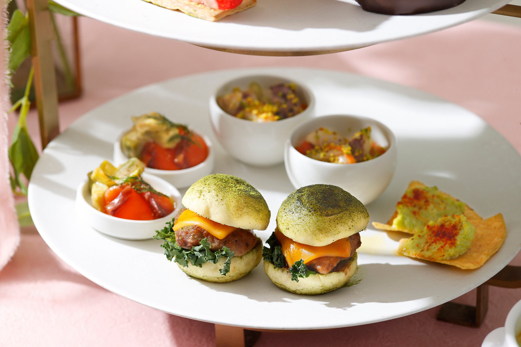 抹茶とピスタチオのセビーチェや、トルティーヤチップにのせた枝豆のフムス、山椒がエッジを効かせたTAVERN特製のグリーンスライダー、鮮やかなサーモンのマリネなど、和×NYモダンでアレンジした4種のセイボリーに加え、ハーブ香るサラダやきゅうりとアーモンドミルクのガスパチョもお楽しみいただけ、ボリューム満点の内容で心ゆくまで“Green Luxe”なひとときをお過ごしいただけます。