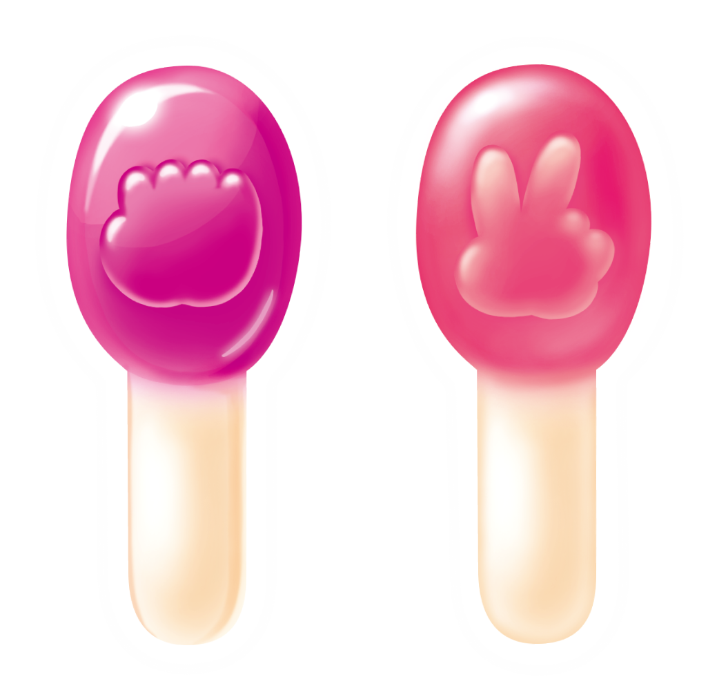 1954年発売の不二家の定番人気棒付きキャンディ「ポップキャンディ」が、グミになって登場。ポップキャンディに使用しているものと同じ果汁を配合し、2色の生地でキャンディと棒をイメージしました。表面にじゃんけん模様が入ったポップキャンディの遊び心はそのままに、「むぎゅっ」「ぷにっ」の2種類の食感が楽しめる「ポップグミ」をぜひお試しください。