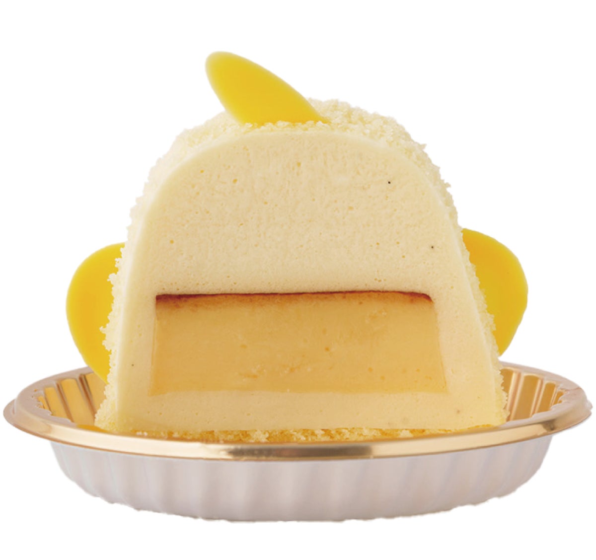 愛知県の地元食材「名古屋コーチン」の卵を使ったプリンを、バニラの香り豊かなババロアで包み込み、粉末状にしたスポンジをまとわせた、ふんわり「ひよこ」の形に飾り付けた生スイーツです。
