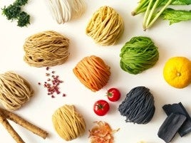 春限定の「桜の葉」をはじめ、「抹茶」「ごぼう」「ゆず」「青のり」「生姜」「桜えび」など、厳選した日本の食材と小麦でつくられた麺を提供します(一部、輸入食材も含む)。味わいはもちろん、色鮮やかで美しい麺をご堪能ください。