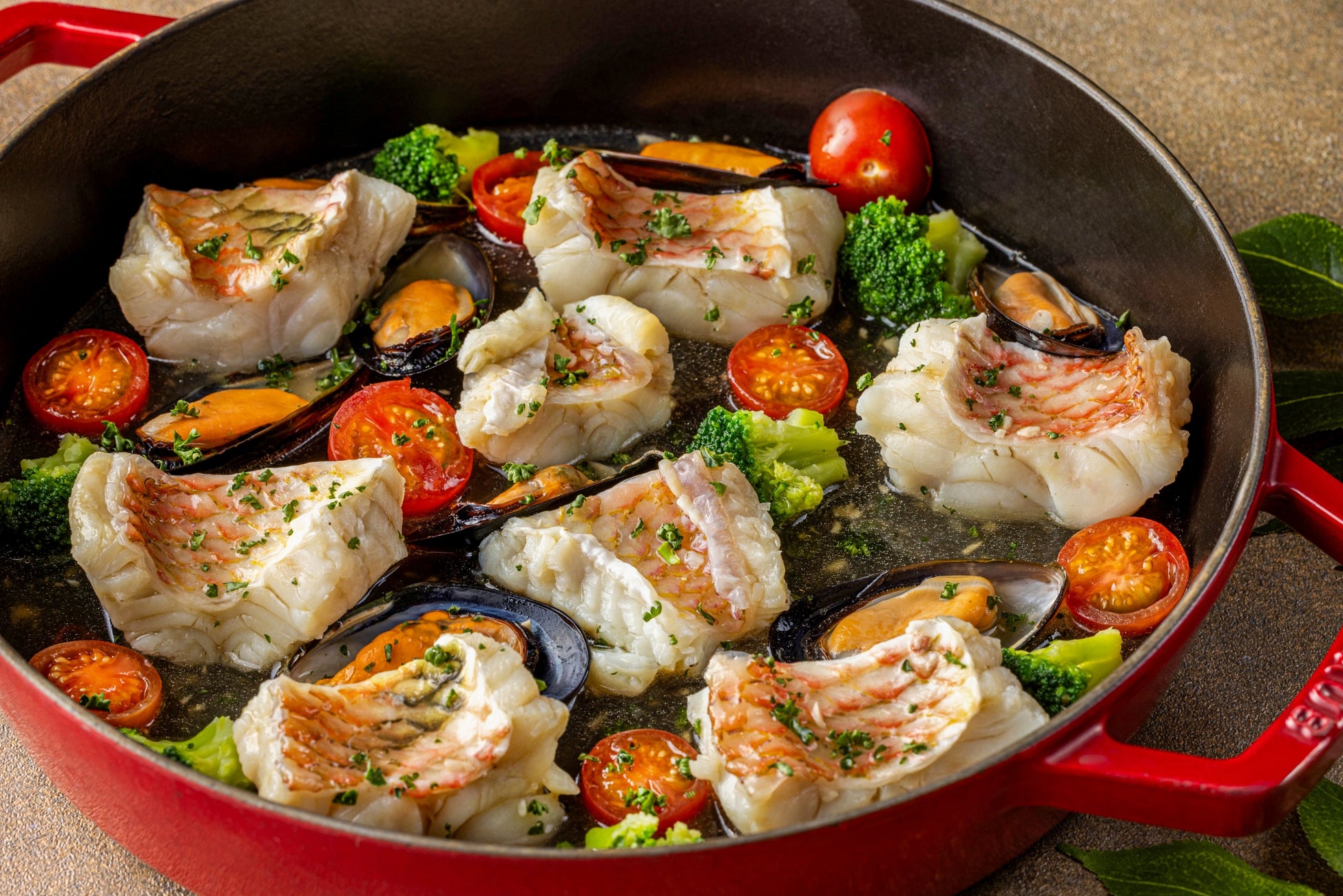 【メニュー名】平戸瀬戸市場直送魚のあごだしのアクアパッツァ
