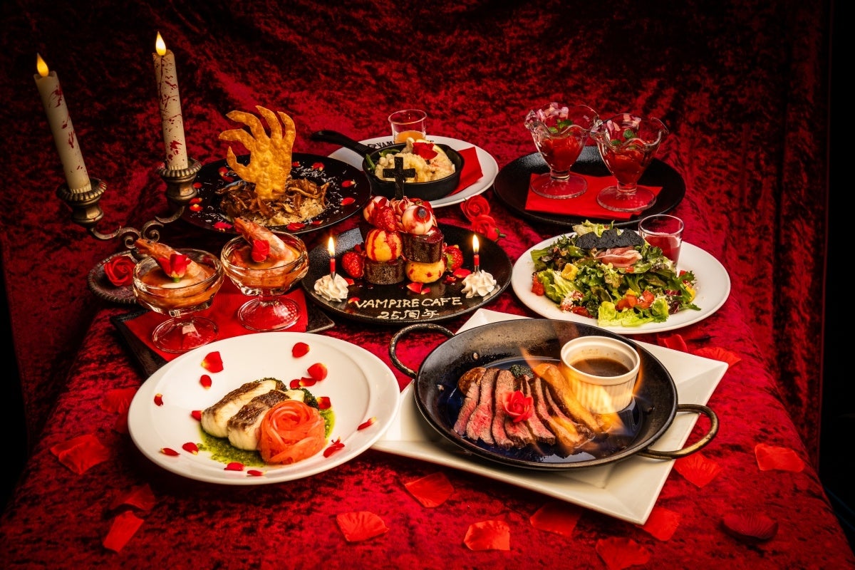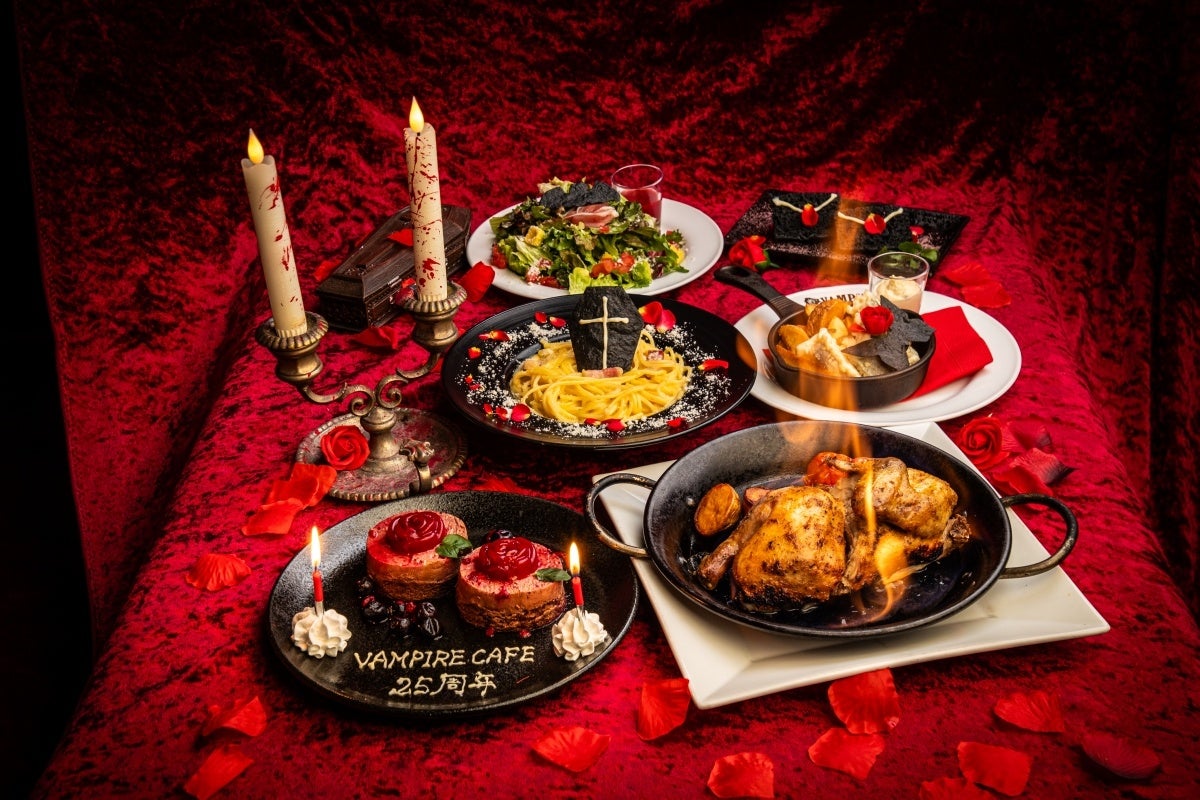 当社の1号店でもある同店の周年を記念して、周年月に先駆けた4月1日(水)より6月30日(火)までの期間限定で、「VAMPIRE CAFE 25周年晩餐会コース」2種及びオリジナルカクテル「25th アニバーサリーブラッド」を展開いたします。