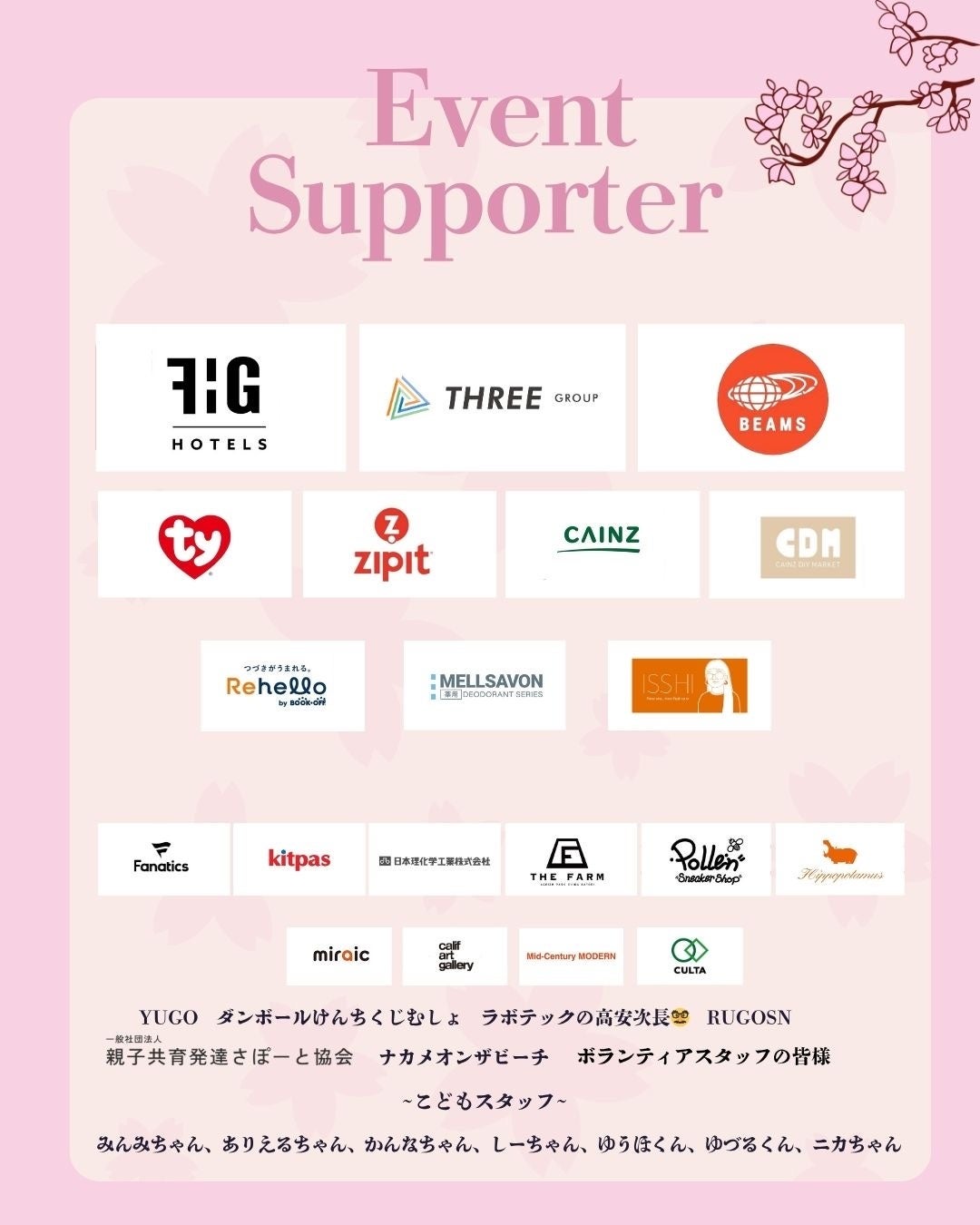 15社の企業様にご協力いただき、子どもたちが安心して楽しめる場をつくることができました。