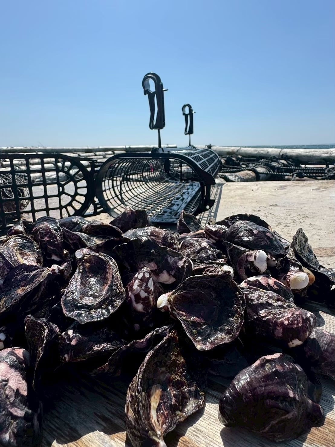 養殖資材のバスケット(SEAPA)を新たに導入し、カルチ式の筏の下に設置するなど、限られた漁場環境で工夫を重ねながら生産に取り組んできました。
