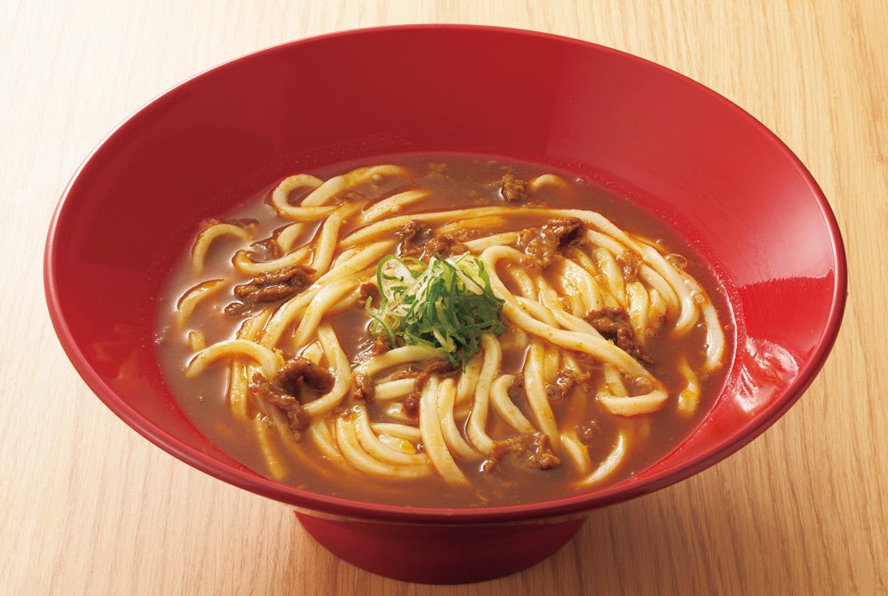 得得の人気メニュー、ジャワ風カレーを関西だしで割ったこだわりの一杯。スパイシーなカレーのコクに、だしの旨みが重なり、まろやかで奥深い味わいに仕上げています。ほどよい辛さと香りが食欲をそそり、最後まで飲み干したくなる美味しさです。うどんは3玉まで同一価格で、ボリュームも満足の一品です。