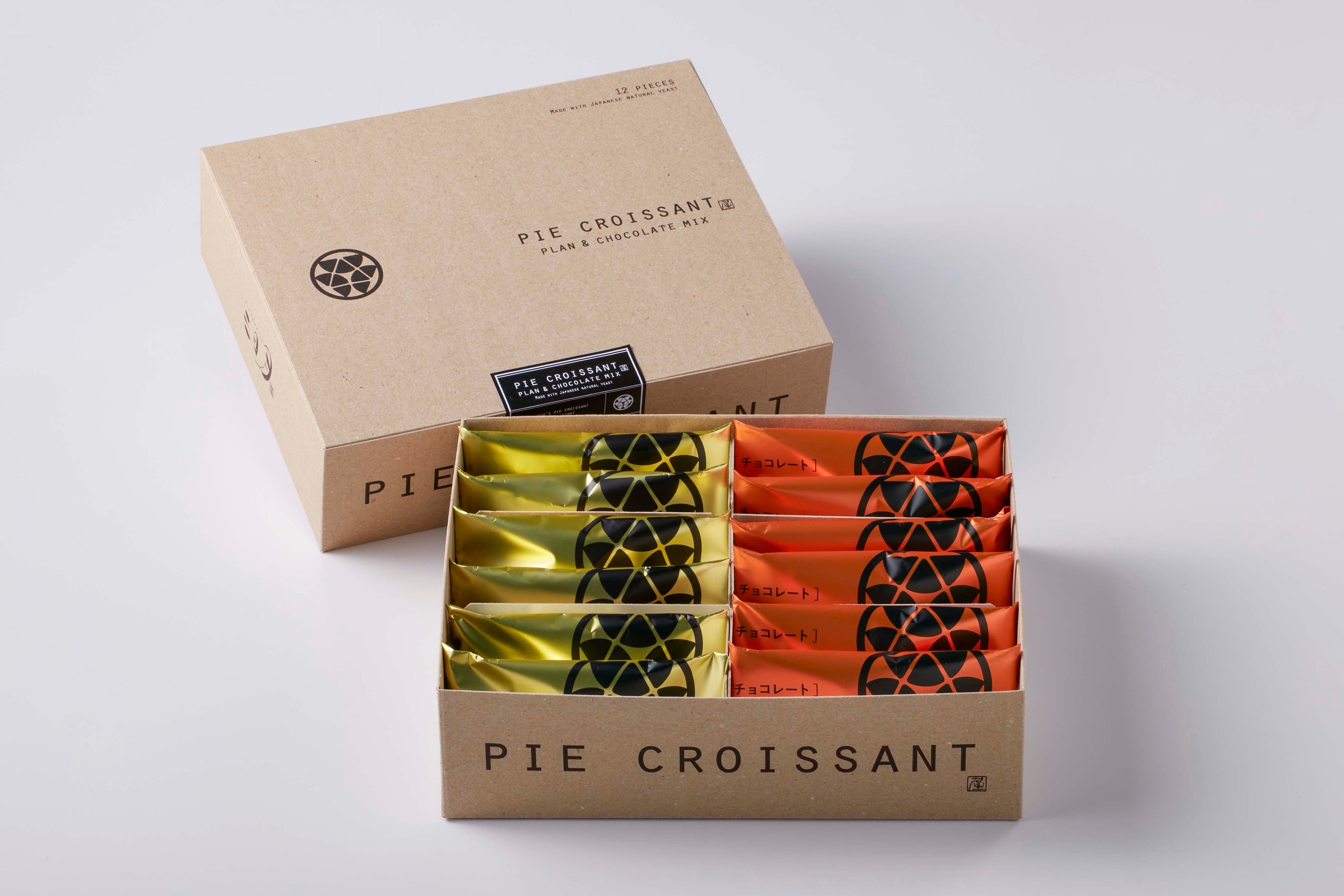 ミニクロワッサンを乾燥させ、パイ生地のように焼き上げました。一口頬張ると、熟練した職人の技術で折込まれたバターの芳醇な香りが広がり、サクッとしたパイ生地とザラメの食感が今までにはない美味しさです。チョコパイクロワッサンは ココアを練り込んだ生地に、ビターなフランス産チョコレートを包み込みました。