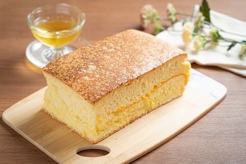 台湾カステラは、台湾で古くから親しまれている家庭的なスイーツで、その場で焼き上げるケーキという意味の「現烤蛋糕(シエンカオダンガオ)」と呼ばれています。大きくカットされ、フワフワの食感とほんのりした甘さは、おやつだけでなく朝食などにもぴったりです。