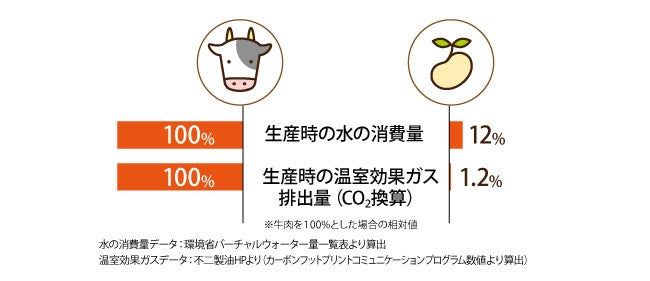 近年、「たんぱく質危機」と呼ばれる課題が世界的に注目されています。人口増加より2030年頃を境に世界的なたんぱく質需要が供給を上回り、肉や魚、卵といった従来のたんぱく源が不足する可能性があります。こうした中、蒸し大豆は持続可能なたんぱく源として期待されています。大豆は、牛肉と比べて生産に必要な水の量は約1/8、温室効果ガスの排出量は約1/85と環境負荷が非常に少ない食材です。また、牛の肥育に2~3年かかるのに対し、大豆は種まきから約4カ月で収穫できるため、安定した供給が見込めます。