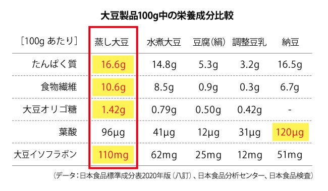 ■ 蒸し大豆は“栄養まるごと”!大豆製品の中でもトップクラスの栄養価